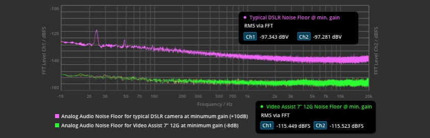 Blackmagic Video Assist 12G позволяет на профессиональном уровне работать с аудиодорожкой с современных камер или с другой звукопроизводящей техники. В случае использования форматов на основе SDI можно в режиме реального времени записывать два, четыре, восемь или 16 каналов звука. Для подключения микрофонов 7-дюймовая модель оснащена парой аналоговых входов XLR с фантомным питанием, которые поддерживают частоту дискретизации 192 кГц несжатого 16- и 24-битного сигнала. Мониторинг громкости обеспечивается индикаторами со шкалой VU или PPM. Созданные на основе последних технологий вещательной индустрии аналоговые аудиоразъемы предназначены для снижения шумов и искажений при сохранении цифрового материала.