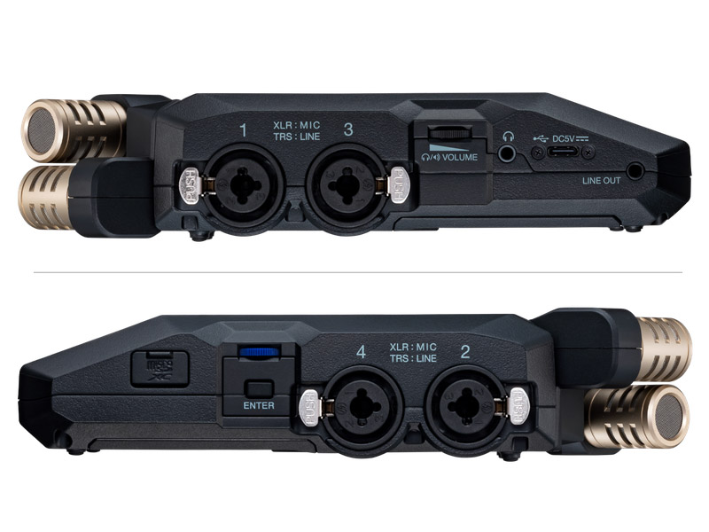 В вашем распоряжении четыре совмещенных входа XLR/TRS с бесшумными предусилителями Zoom, а также прилагаемый модуль с двумя X/Y-микрофонами, способными захватывать аудио громкостью до 135 дБ SPL, что сравнимо со звуком двигателя реактивного самолета.